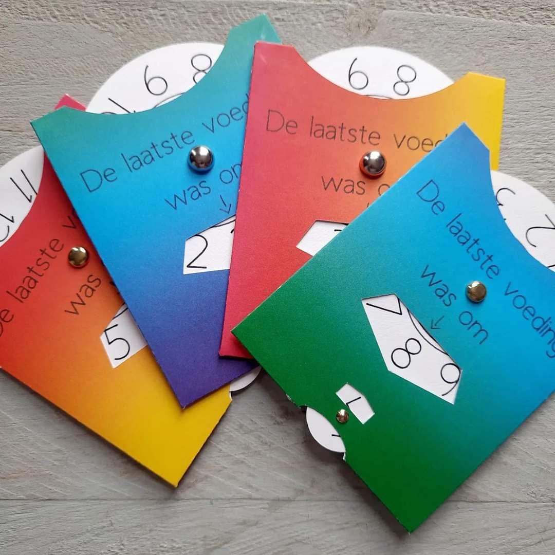 Voedingskaarten zijn ontzettend handig om aan te geven wanneer de laatste voeding van je kindje was en/of met welke borst. Het grote rondje van de voedingskaart geeft de tijd aan, het kleine rondje geeft aan welke borst je gebruikt hebt of fles. Ook erg handig voor mee naar de oppas, zo kunnen zij ook aangeven wanneer jouw kindje bij hen voor het laatst gevoed is.